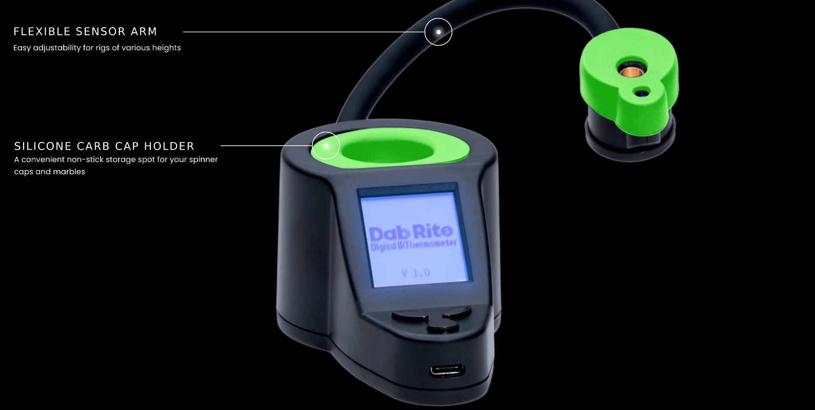 The Dab Rite™ is the most advanced digital IR thermometer on the market that is specifically designed for the connoisseur. The Dab Rite Digital IR Thermometer features an adjustable sensor arm made for a more accurate temperature reading.