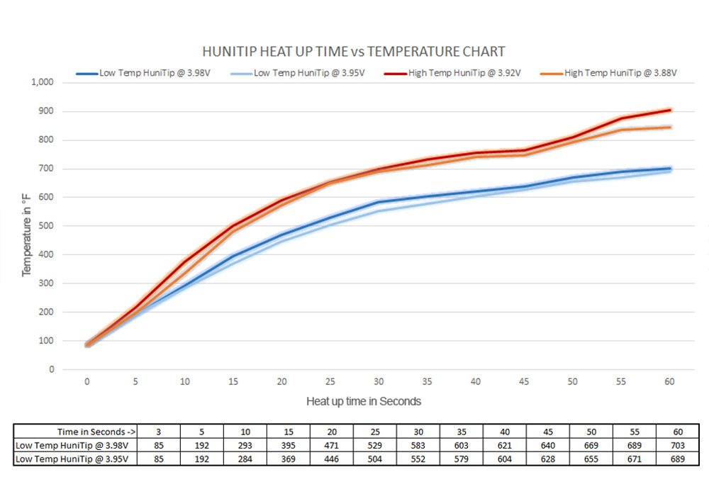 - The Huni Badger reaches operating temperature in roughly 10 seconds. CAUTION: NEVER TOUCH THE HUNITIP BEFORE IT HAS COOLED DOWN.