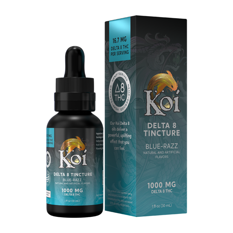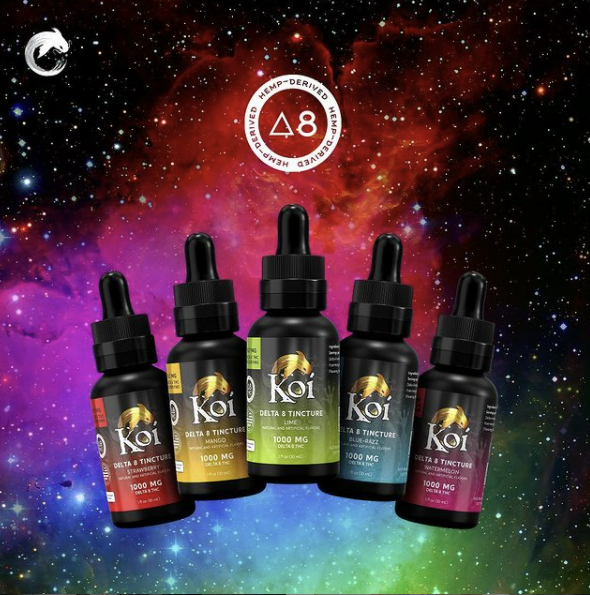 Our Koi Delta-8 THC Tinctures are packed with flavor and hemp derived Delta-8 THC. We offer these tinctures in 5 mouth-watering flavors, including: Strawberry, Mango, Lime, Blue-Razz, and Watermelon. Each 30 mL bottle contains 1,000 mg of Delta-8 THC to help you create balance daily.