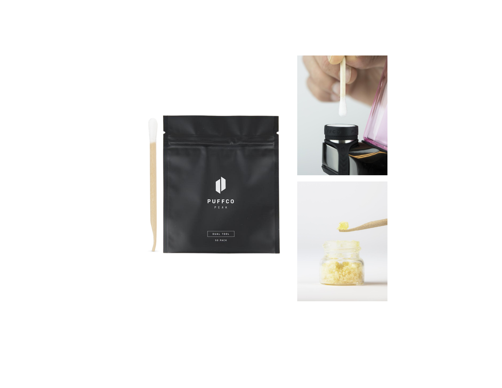 The Puffco Dual Tool is a two-in-one Peak companion. One side features a loading tool (for scooping cannabis concentrate with ease), while the other features an organic cotton cleaning swab. Less mess, more dabs.