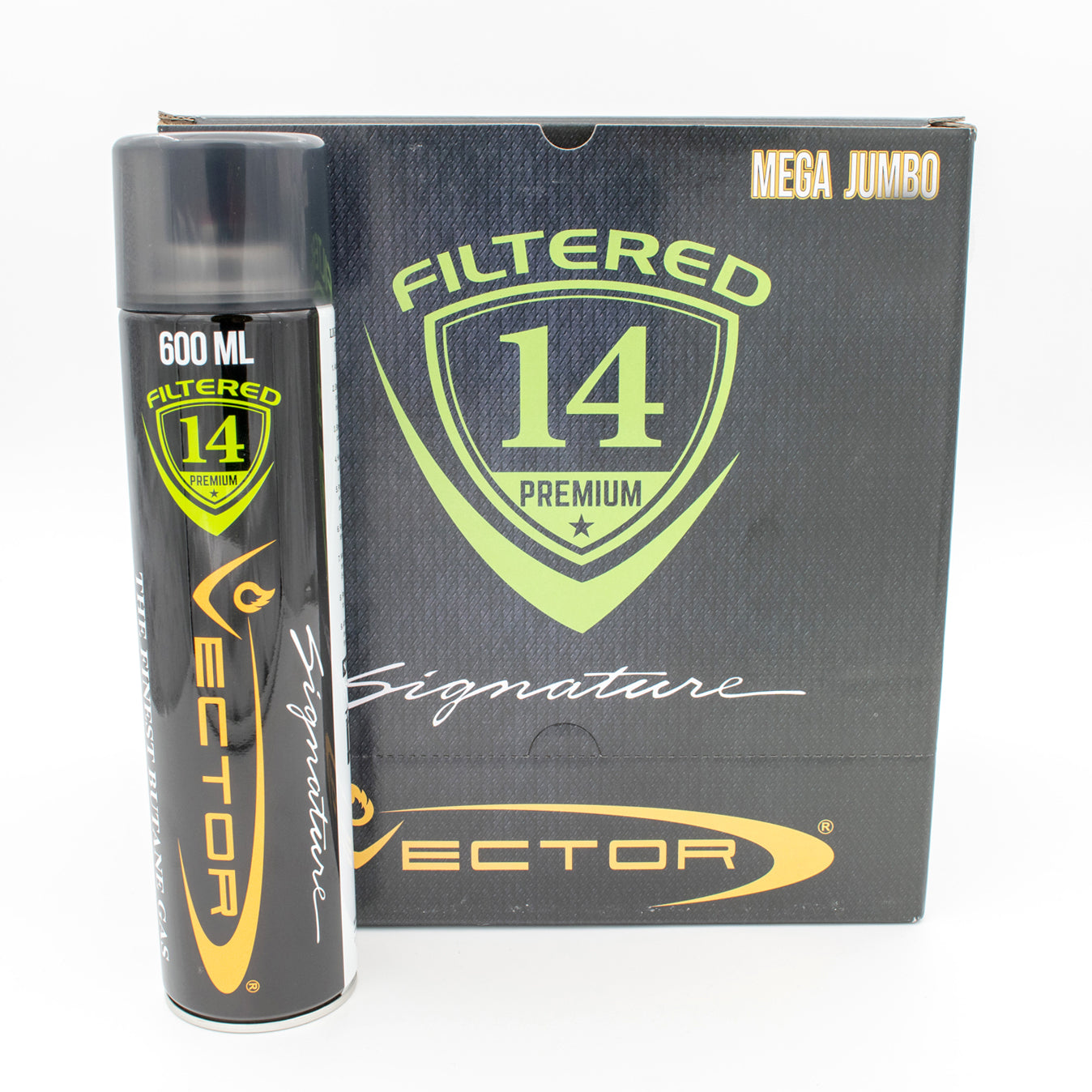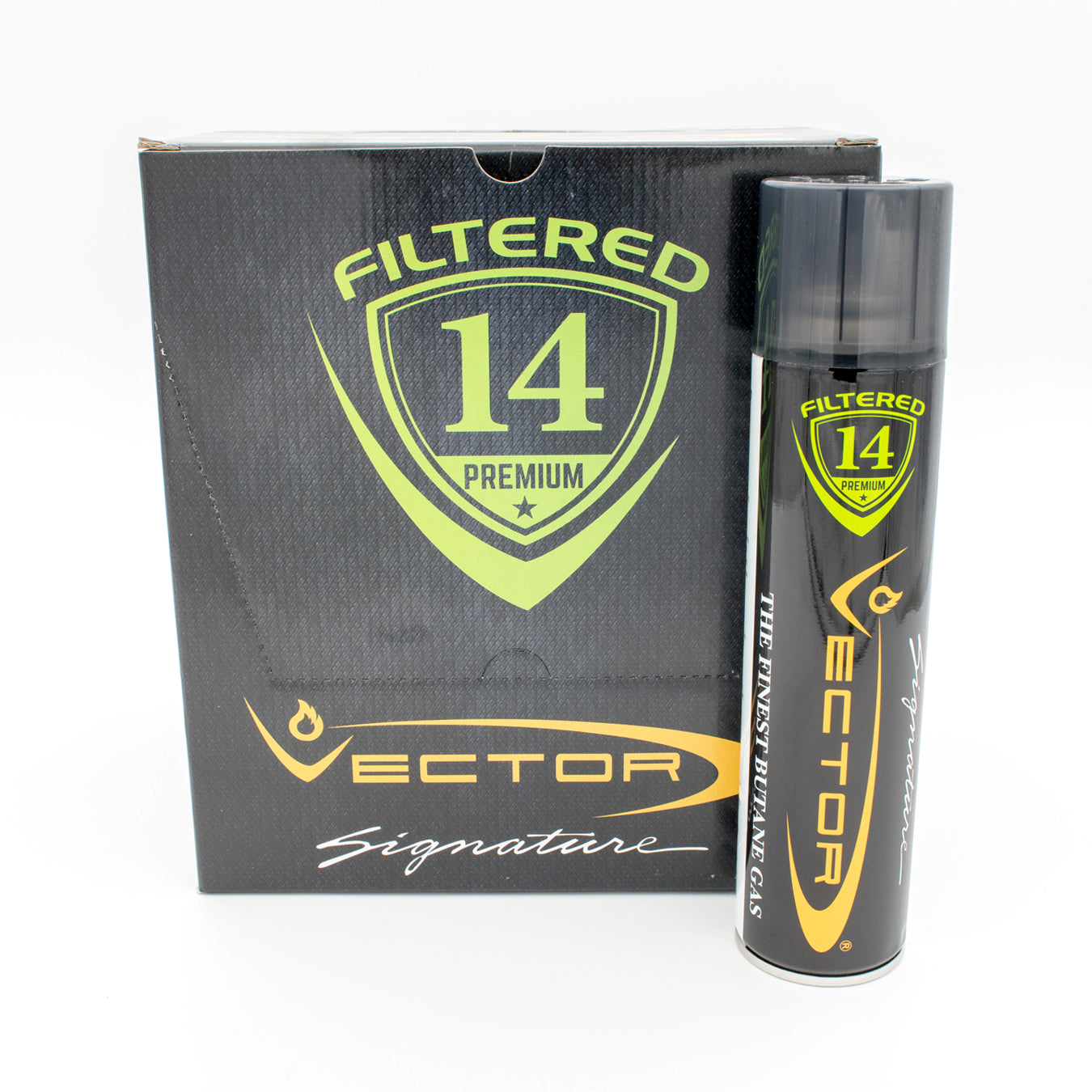 Vector Formula 14 filtered 14x premium butane gas is highly recommended for all high performance Vector and other gas torches and lighters. This ultra-clean butane is refined up to 14 times, while most other butane are refined 1 to 3 times. Jet torch and turbo lighters require ultra pure Vector gas to produce highly efficient jet flames.