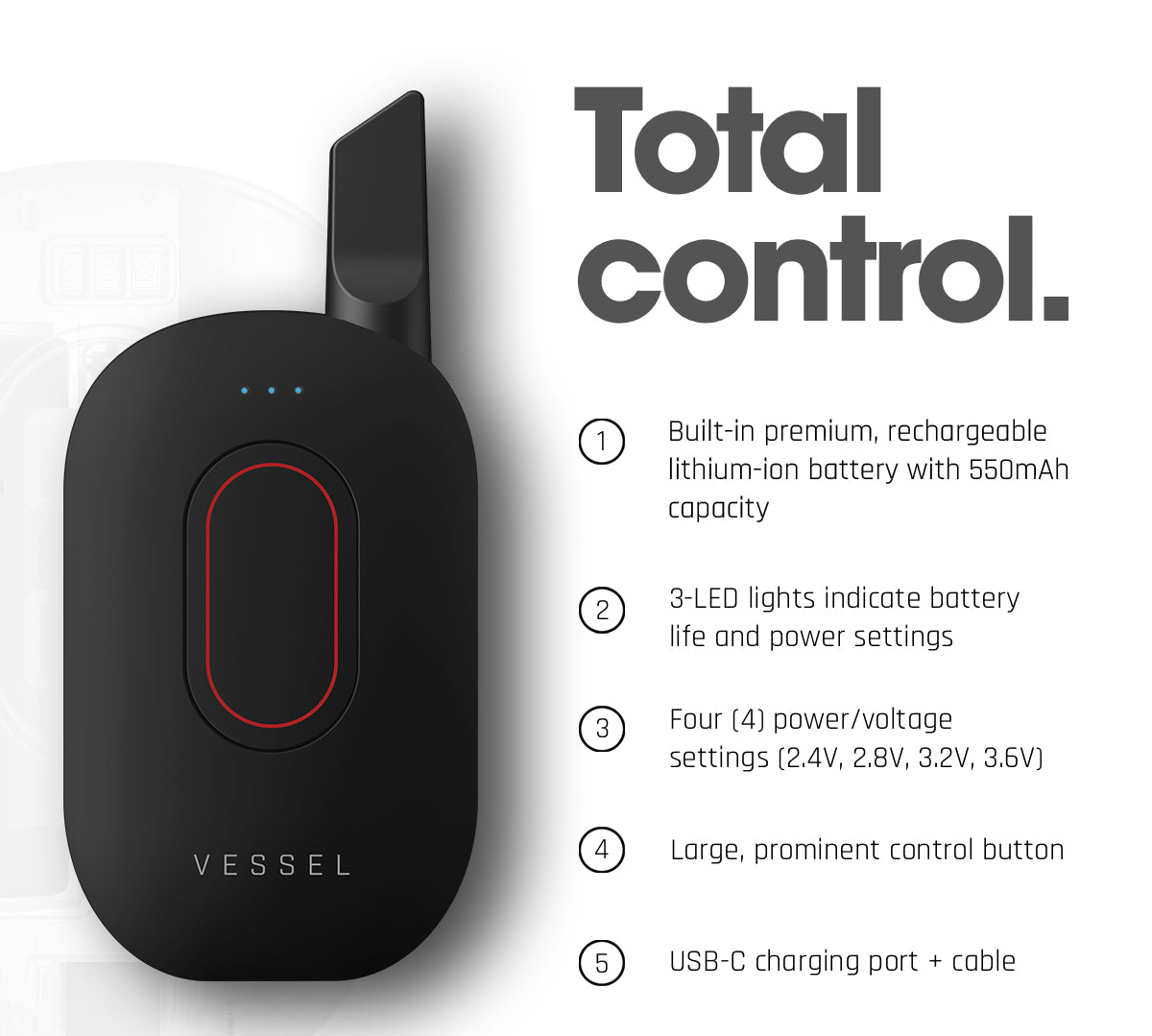 VESSEL Brand Premium 510T Vape Cartridge Battery | Compass Series